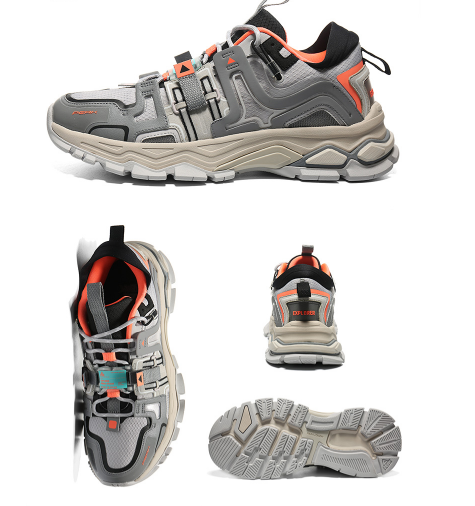 2. Leather and three-dimensional material combination in the heel, explorer "Explorer" highlights the theme of exploration, vertical and horizontal trend, and high-profile